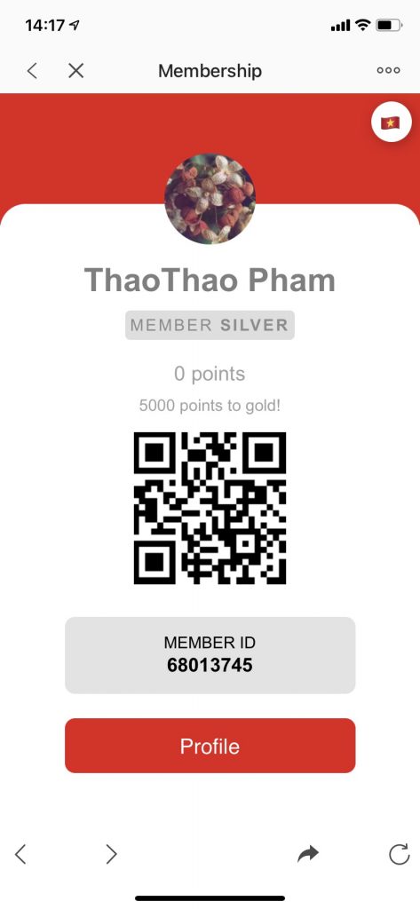 Sau khi quét mã QR code định dạng của Doanh nghiệp khách hàng có thể bấm vào quan tâm vào đăng ký thành viên ngay trên Zalo app để được tích điểm và trở thành thành viên chính thức của cửa hàng. Sau khi đã là thành viên khách hàng có thể thấy được điểm của mình và chỉnh sửa thông tin cá nhân
