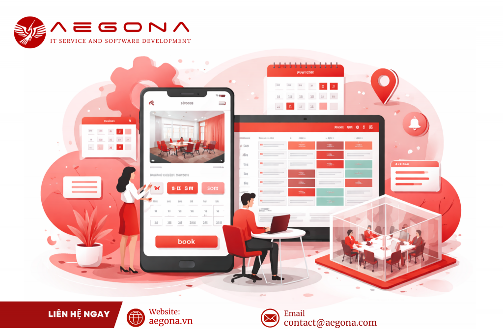 Aegona cung cấp dịch vụ phát triển phần mềm booking phòng họp và hệ thống quản lý workspace theo yêu cầu, phù hợp với từng mô hình doanh nghiệp.