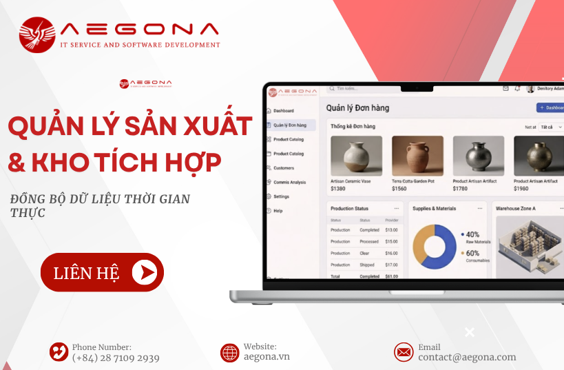 Phần mềm quản lý sản xuất và kho 2026 bứt phá vận hành, xử lý dứt điểm rời rạc dữ liệu hằng ngày. Aegona đặc chắc hỏa tốc giúp doanh nghiệp bứt phá tồn kho và tối ưu chi phí hằng năm.